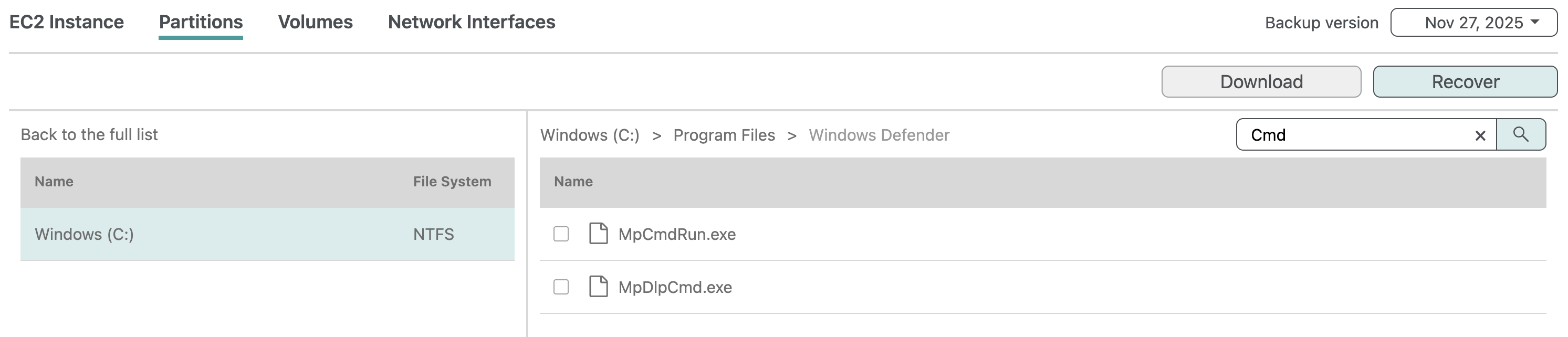 You can restore a virtual machine from a backup snapshot, creating a new instance with the same or custom configuration. If the original virtual machine still exists in AWS, it will not be affected by the recovery.