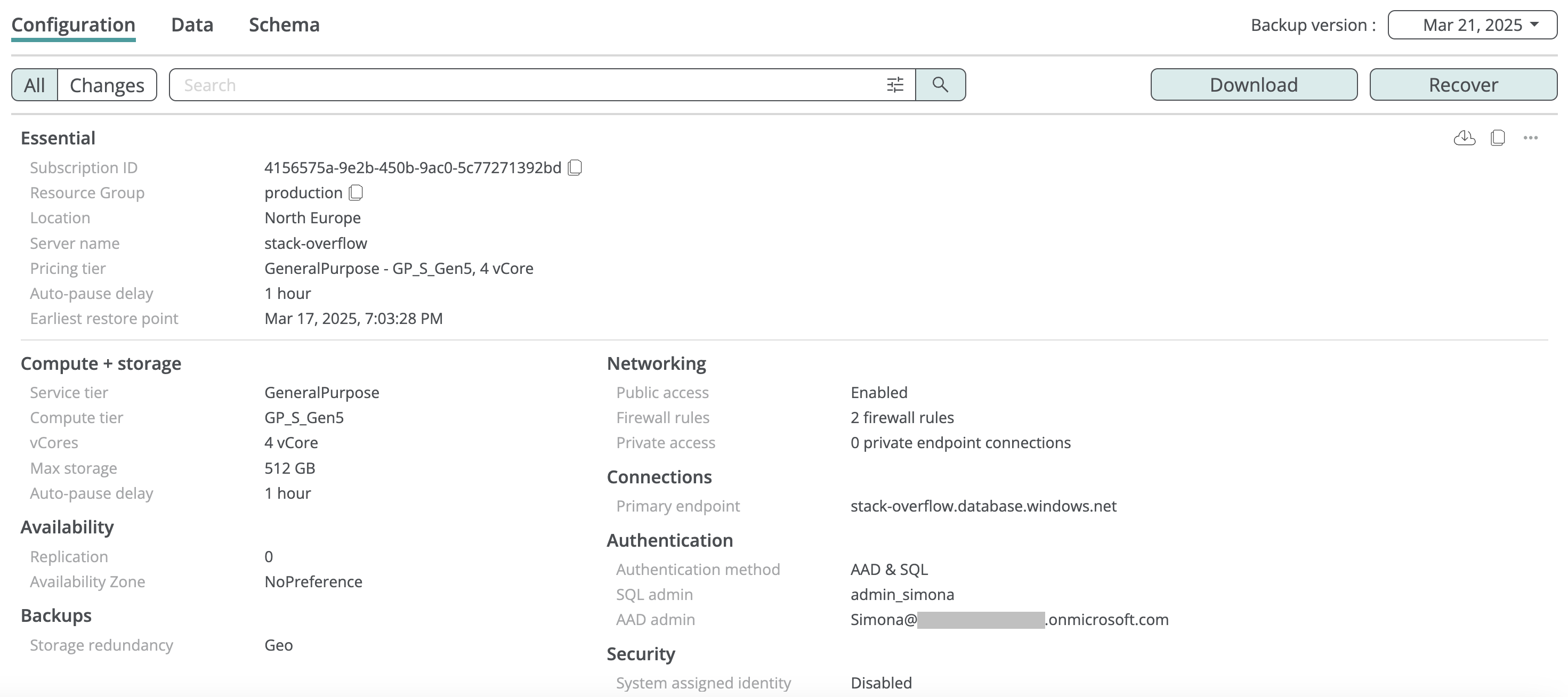 Afi provides comprehensive backup and recovery support for Azure SQL databases, as well as online preview and export for database data and metadata.