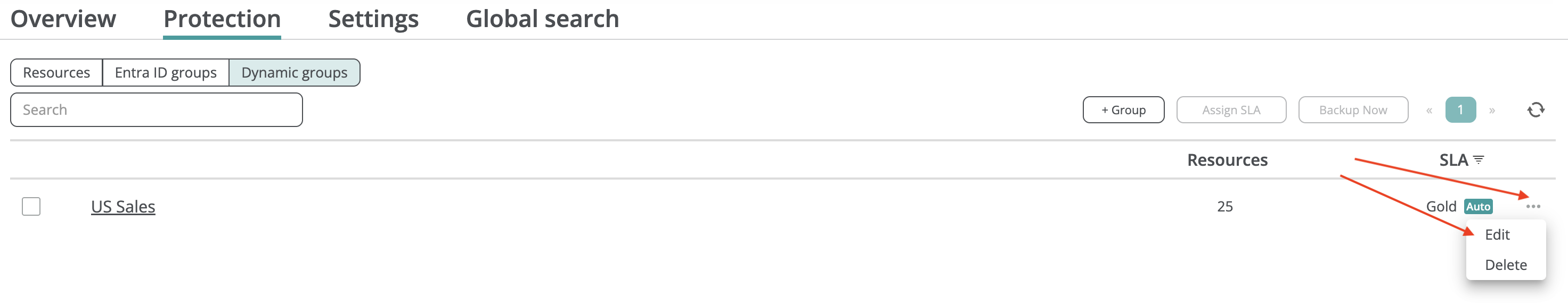 You can create and manage dynamic groups for a tenant on the Service → Protection → Dynamic groups tab: