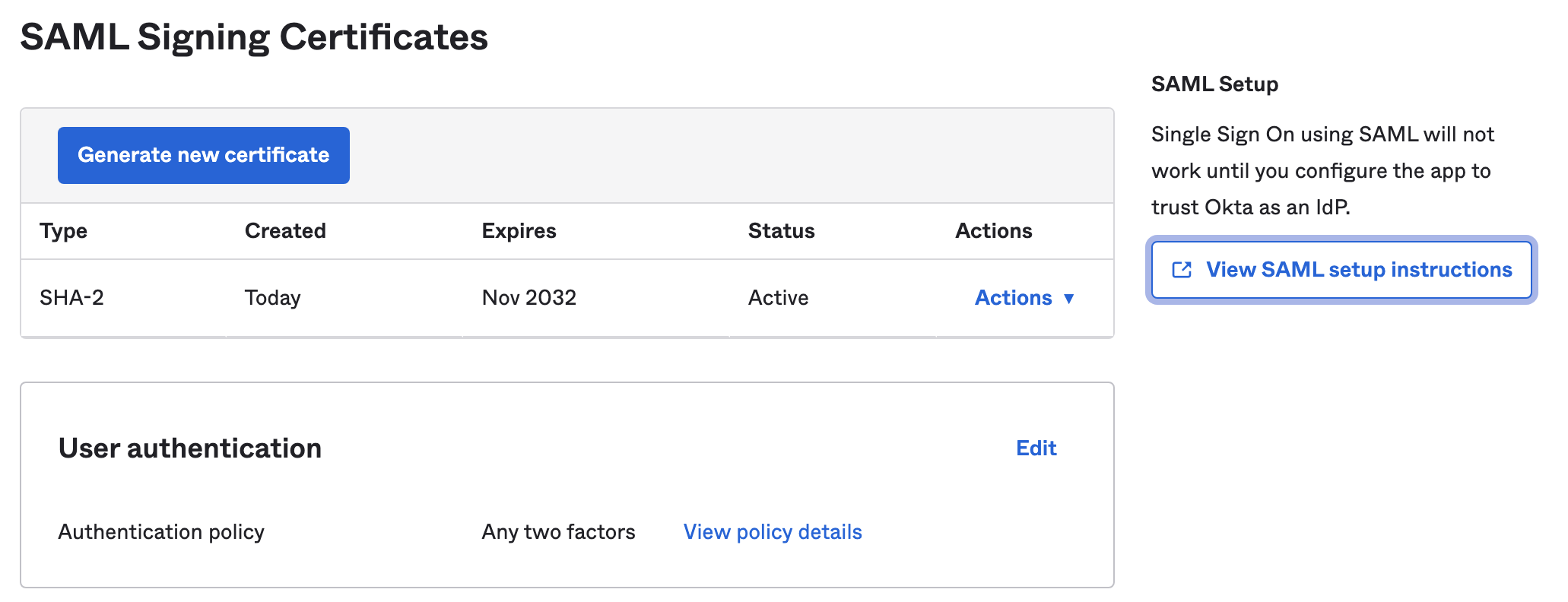 On the SAML setup instructions page you will find the following items that are required for further configuration:
