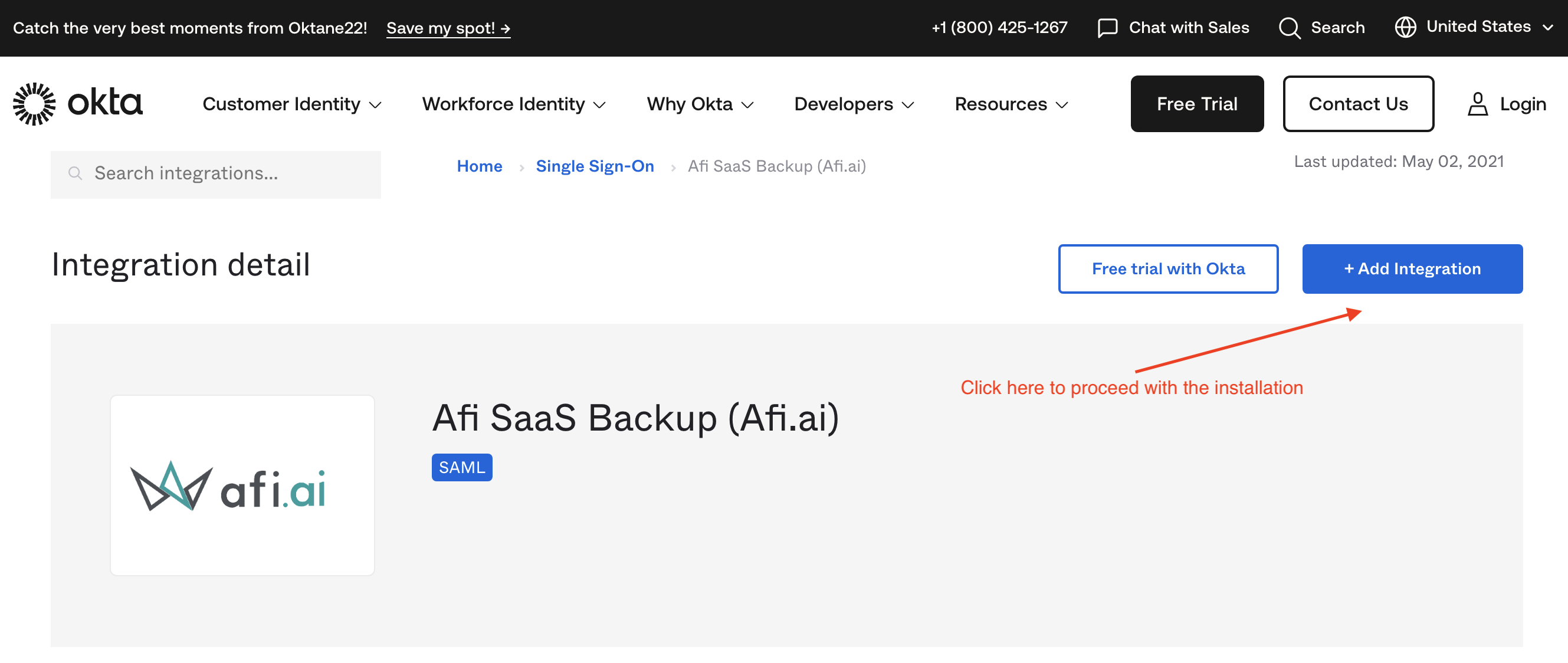 Step 1 - Install Afi application from Okta marketplace