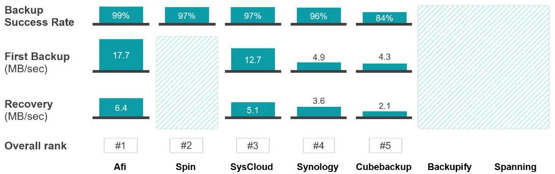 We don't have full test results for SpinBackup (Spin.AI), but based on the feedback from our service provider partners their performance places them on the 2nd place. While we don't see them in the deals very often, they have some good customer feedback and we may add them to the full comparison later.