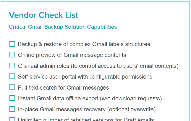 Excluded from the benchmarking are solutions with little usage and few user ratings, including Druva, Avepoint and DropSuite and others. These providers have good Microsoft 365 backup solutions and we often compete against them for M365 backup customers. However, their presence in the Google Workspace segment is limited (and they spend fewer resources on supporting Google Workspace).