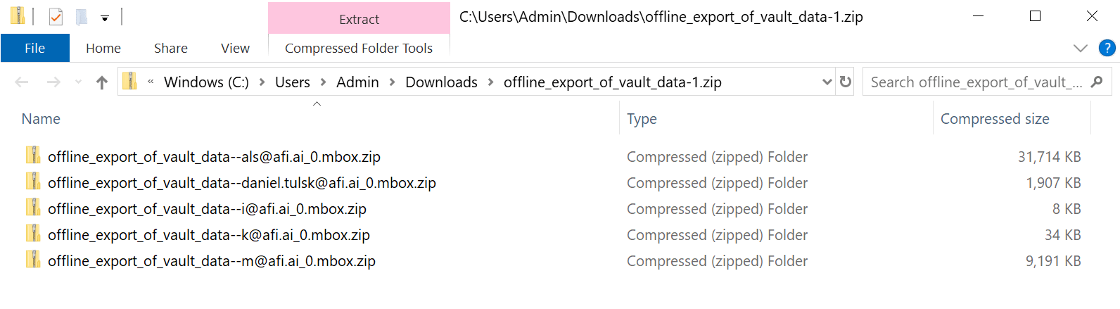 You have to download each file separately and this is not feasible/practicable for most G Suite domains with more than just a handful of users. Our export had approx. 200 individual export files and we managed to download all of them, this is hardly a sustainable solution for recurring G Suite email backup.