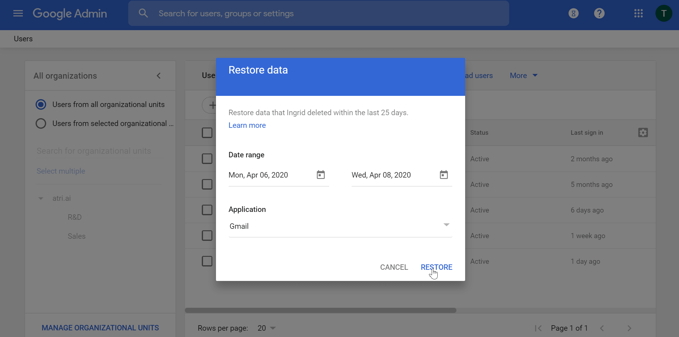 - Use the built-in Google Workspace recovery if you need to restore emails deleted less than 30 days ago