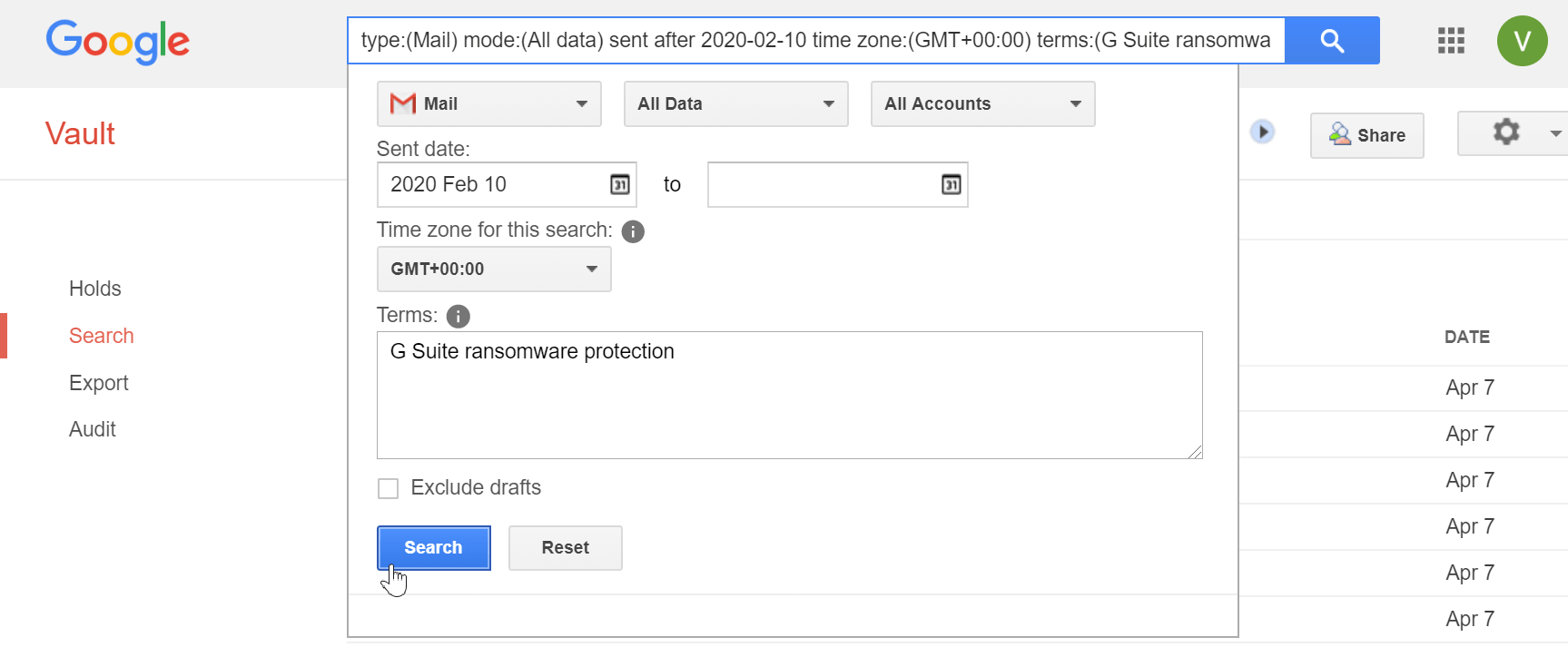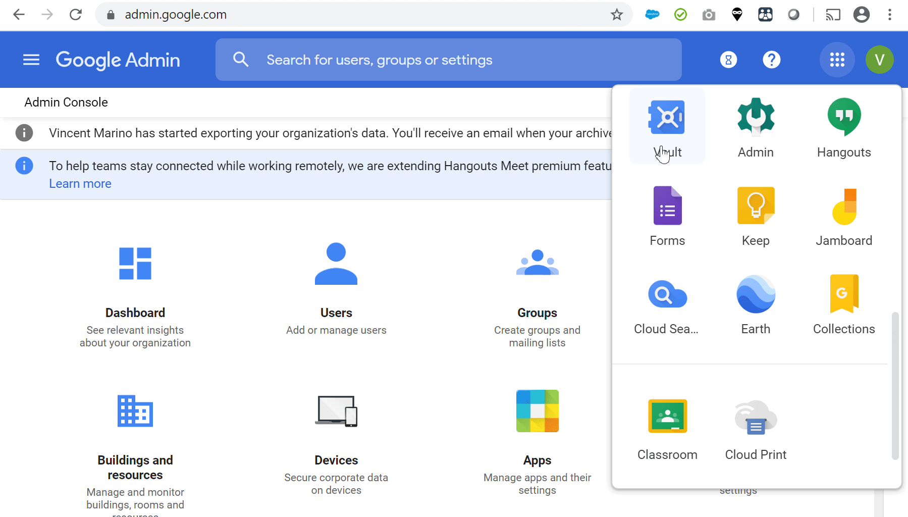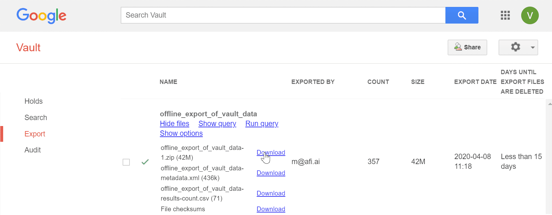 G Suite Takeout page when export is available